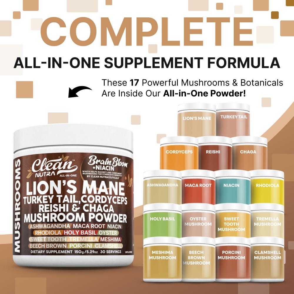 BrainBloom is a daily wellness powder made for adults looking to support focus, balance, and clarity with a comprehensive blend of mushrooms and adaptogens. With lion’s mane, cordyceps, reishi, and more—this versatile, unflavored powder blends easily into coffee, smoothies, or tea for a functional start to your day.
