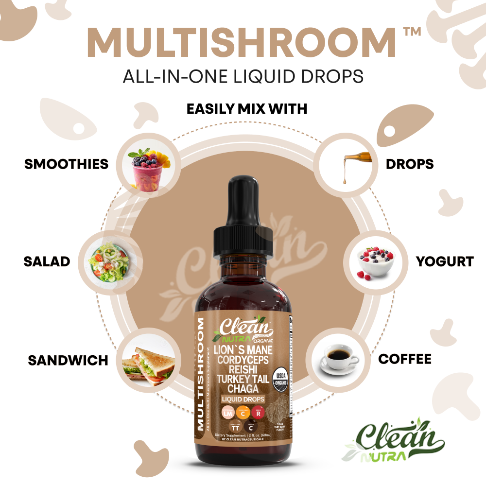 MultiShroom is a potent, full-spectrum mushroom extract in liquid form that blends nine powerful medicinal mushroom species into a single daily formula. Just a few drops deliver support for cognitive function, immune resilience, and natural energy, helping you stay sharp and balanced through your day.